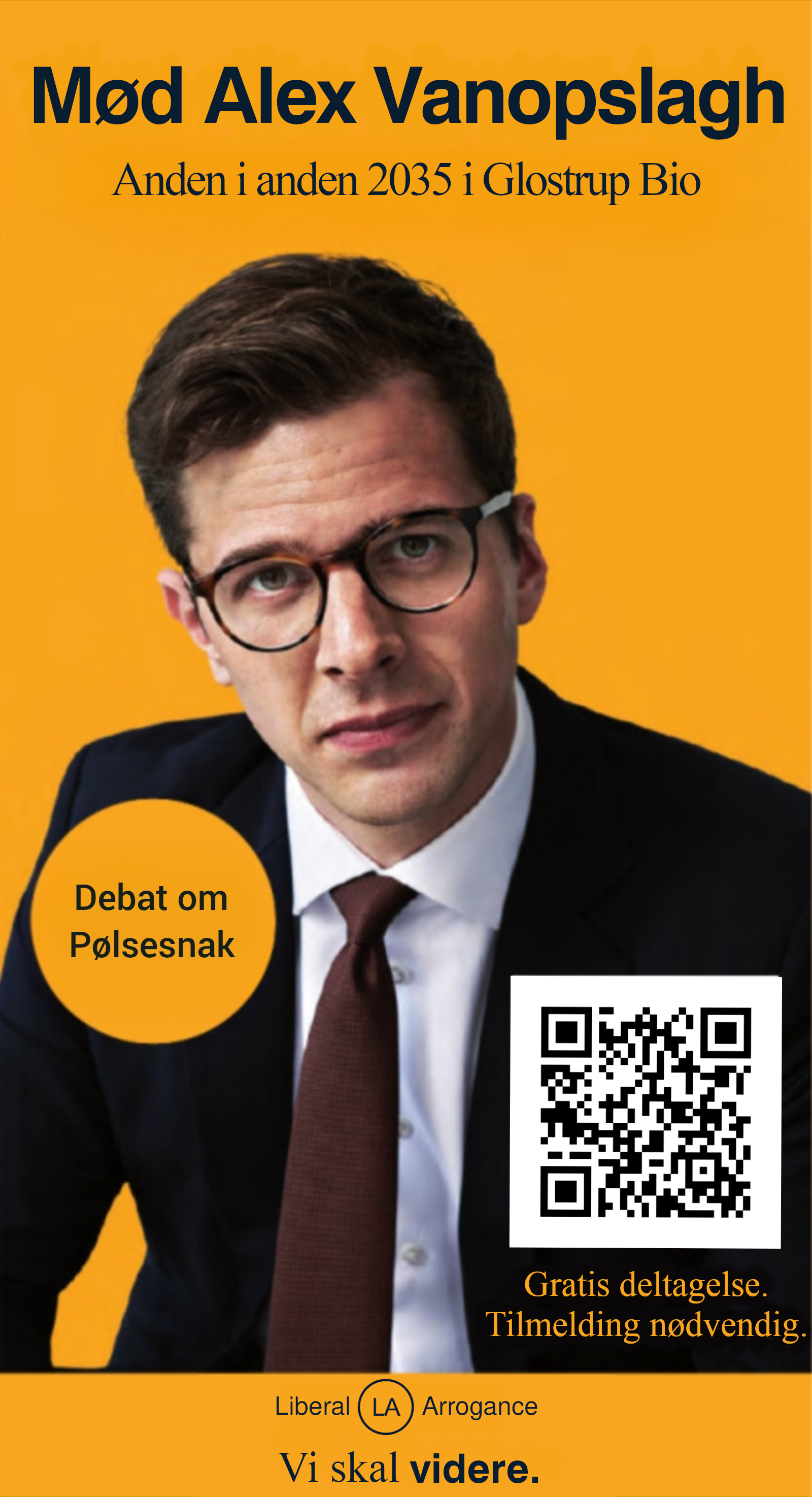 | Nu har det digitale snedet sig ind i min avis. Jeg havde mulighed for at møde Alex, men det kan jeg ikke uheldigvis. Jeg skal åbenbart bruge en QR-kode Skal jeg snart på museum, og i stedet møde en kustode. Kære Liberal Alliance jeg ville aldrig give jer et kys, men giv dog alle andre mulighed for et kryds. |